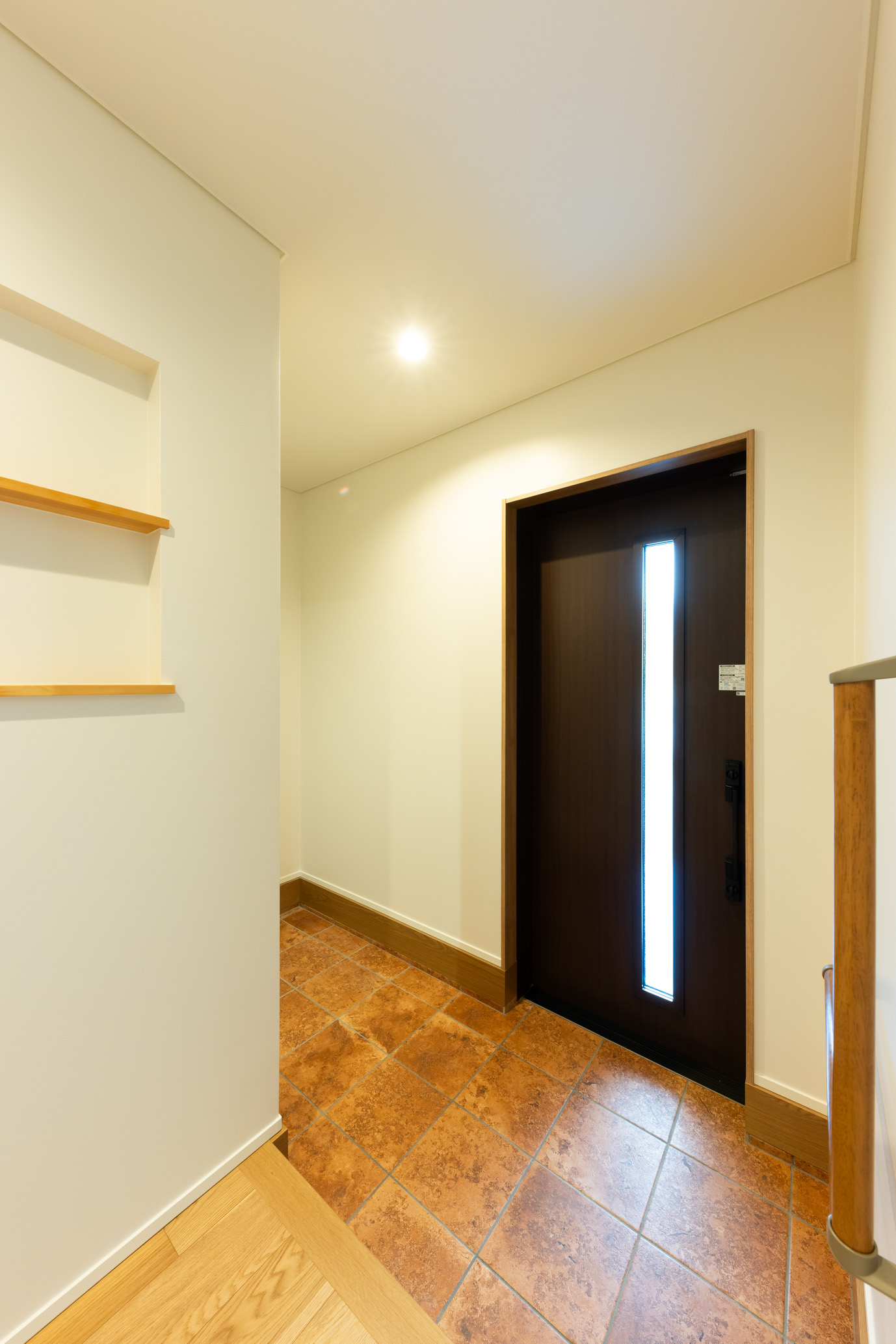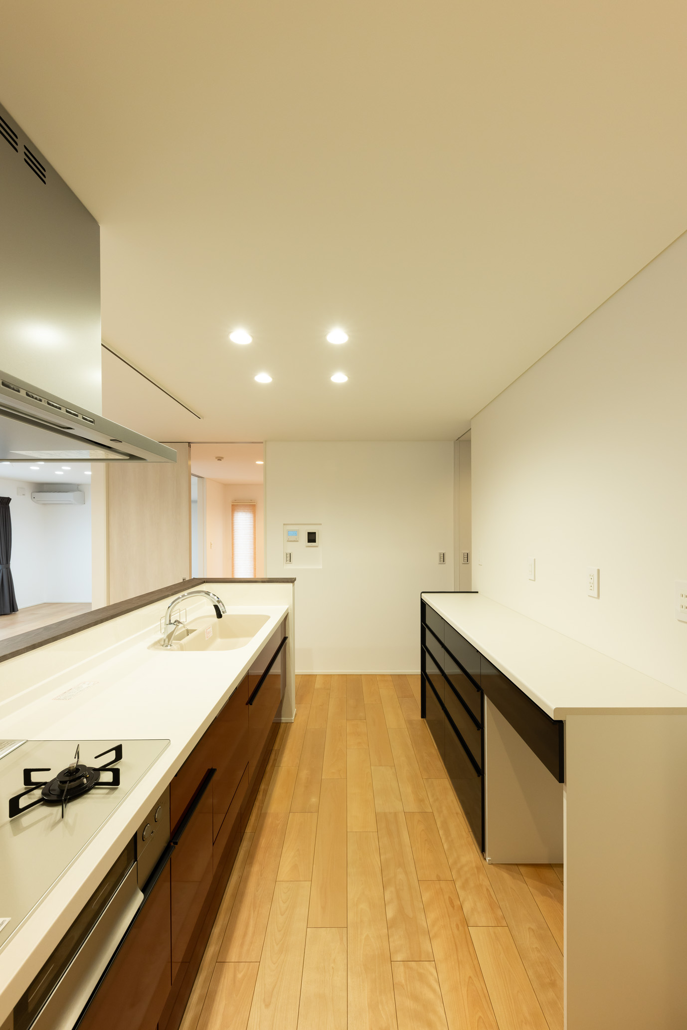 深みのあるブラウンの外壁を基調に、落ち着きと温もりを感じられる外観に仕上げました。室内には、広々とした玄関や高級感のある階段を設け、ゆとりと上質さを感じられる住まいとなっています。リビング・ダイニング・和室には漆喰壁を採用し、愛犬と暮らすご家庭にも配慮。さらに、数か所にハイドアを取り入れることで、室内をより広々とすっきりと見せています。3つの和室は、来客対応から日常のくつろぎまで幅広く活用でき、落ち着きのある暮らしを叶えます。また、洗面室・脱衣所・浴室を一直線に配置した、無駄のないスムーズな水まわり動線も魅力。素材の温もりと使いやすい動線計画が調和した、家族の毎日を心地よく支える住まいです。