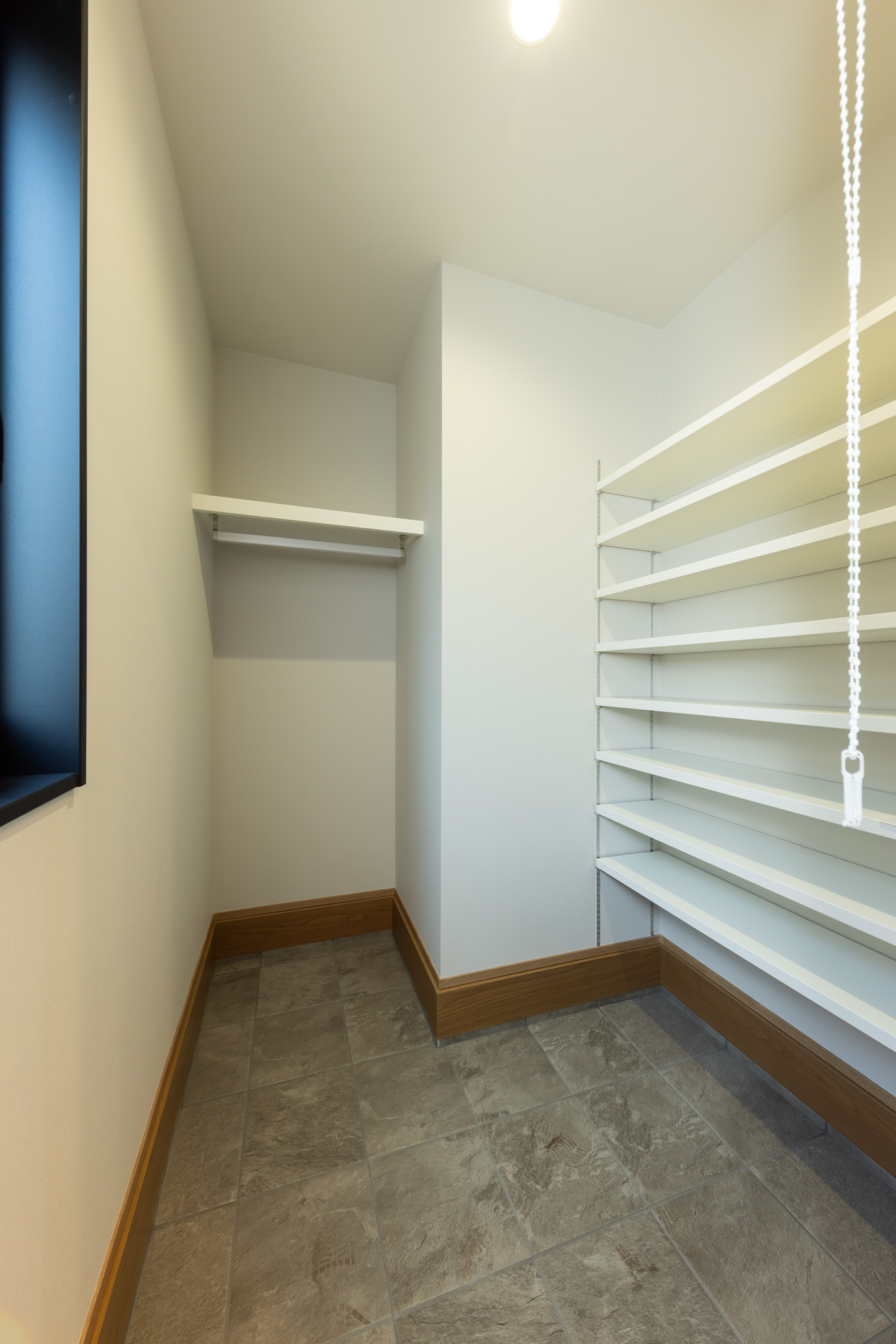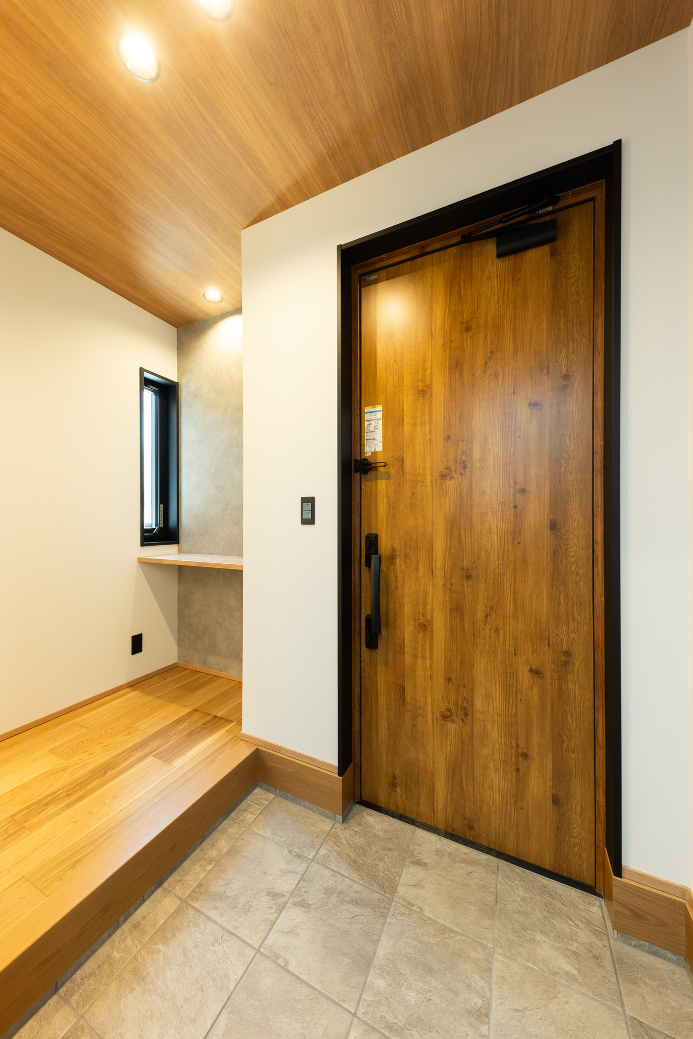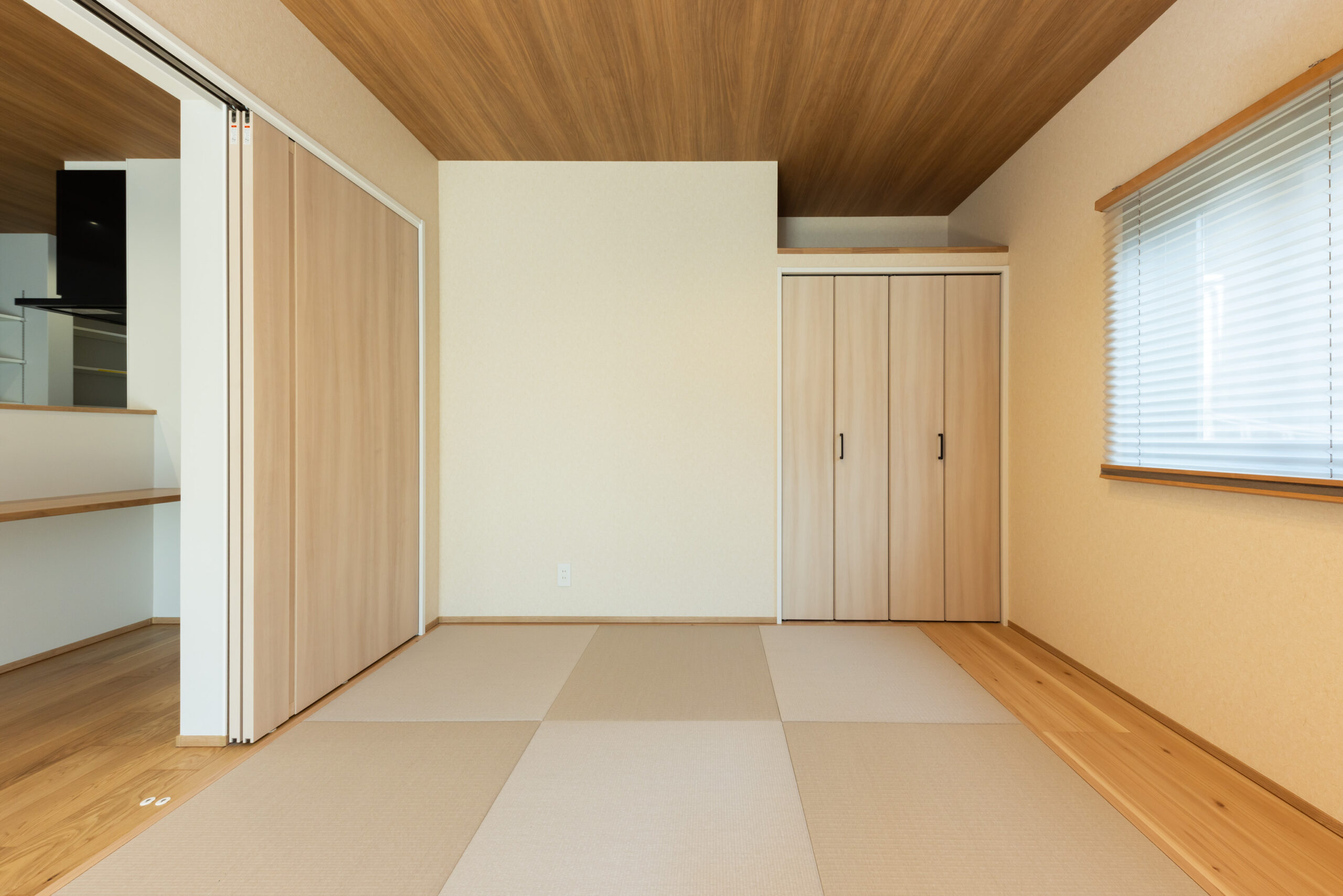 段差と勾配屋根を活かした外観は、シンプルながらも立体感のある印象的な佇まいに。室内は、LDKを中心に各空間がゆるやかにつながる間取りとし、視線の抜けと広がりを感じられる開放的な空間構成を実現しました。キッチンから水まわりへの動線もスムーズにまとめ、日々の家事負担を軽減。さらに、用途に応じて使い分けられる個室や収納をバランスよく配置し、暮らしやすさにも配慮しています。高低差を活かした空間設計と機能性を両立した、家族が心地よく過ごせる住まいです。