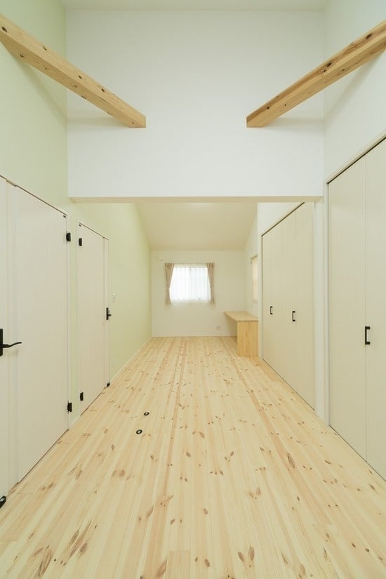 さらに、構造梁を露出することで高天井を実現し、外からの光を多く取り込む、明るく開放的な