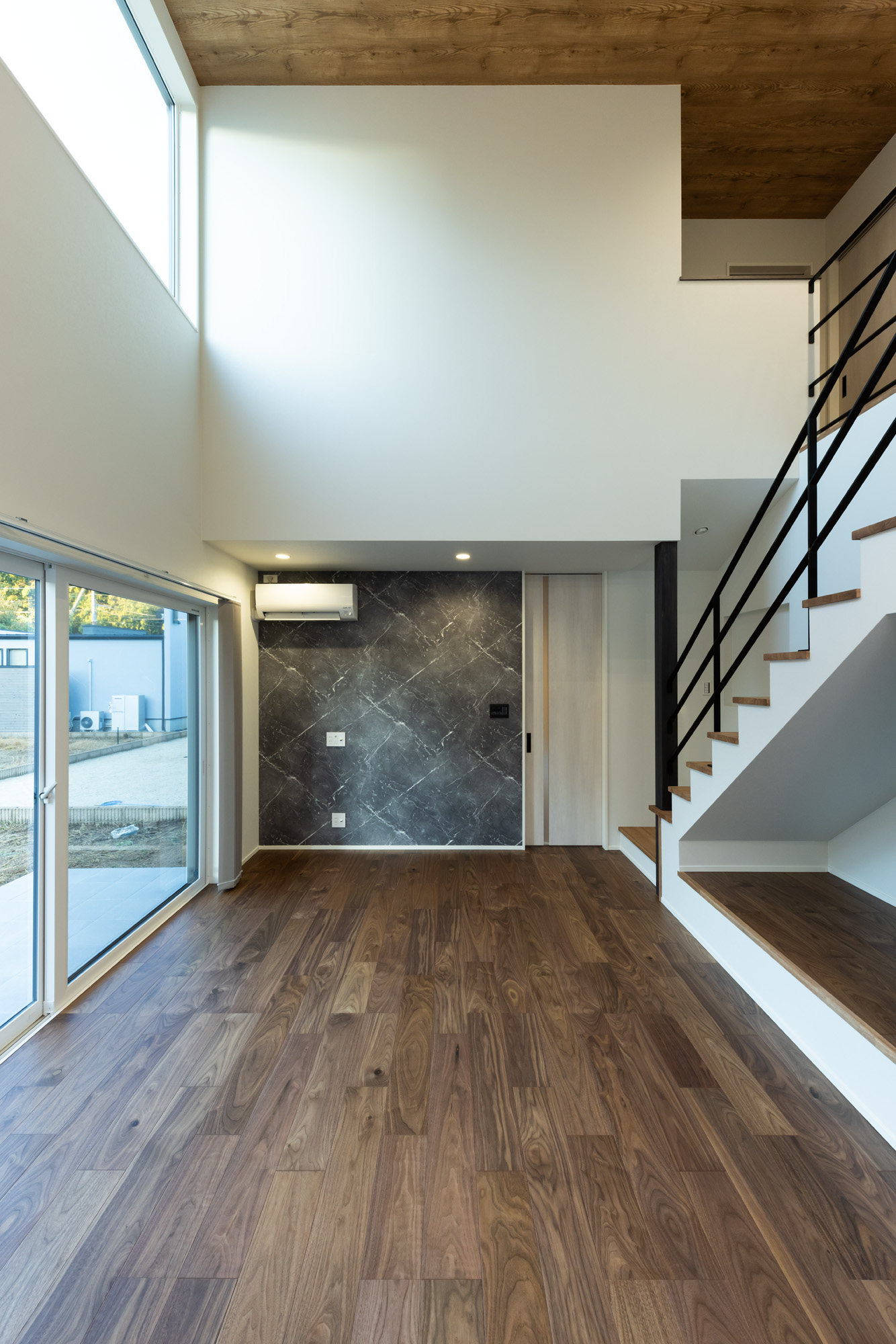 ヌックと吹き抜け、造作階段のあるモダンなお住まい