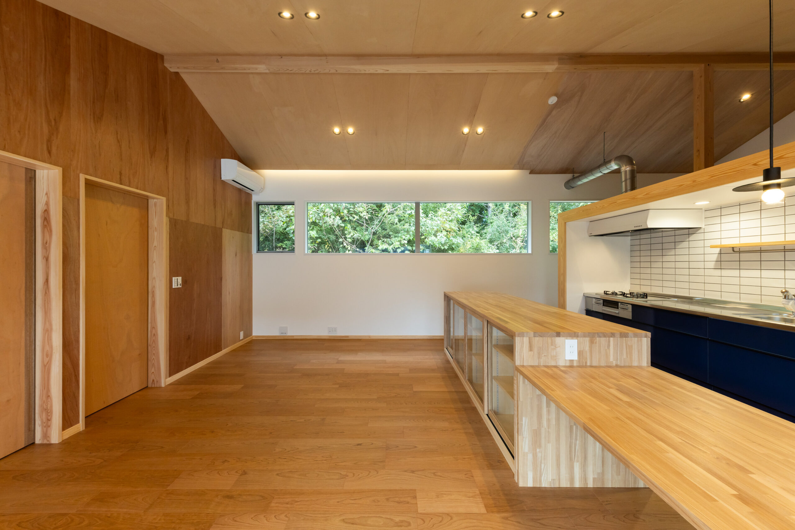 緑に囲まれた、家族が集うこだわりの平屋