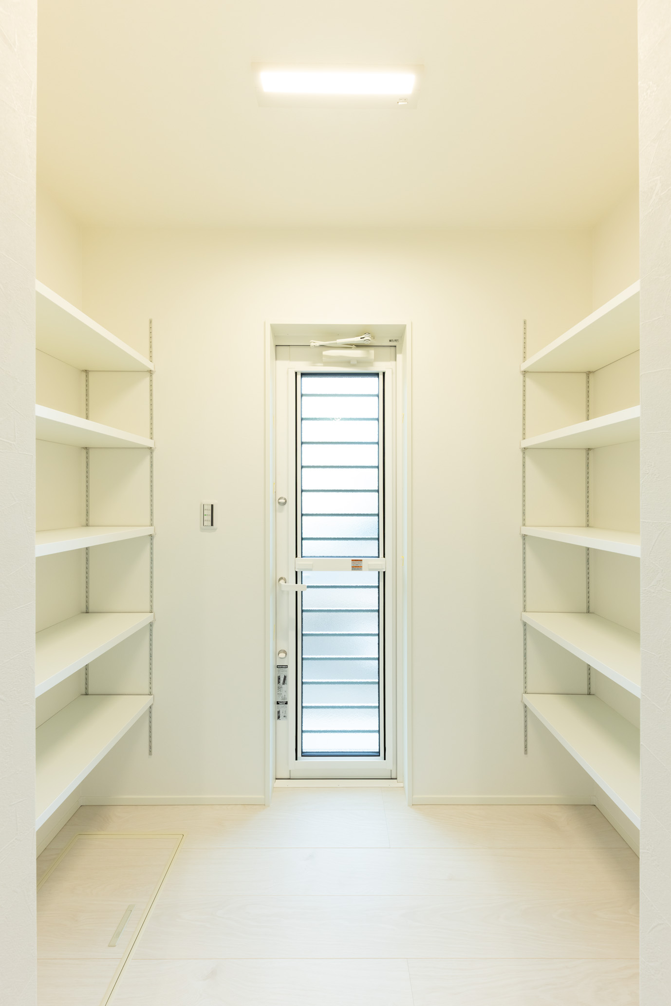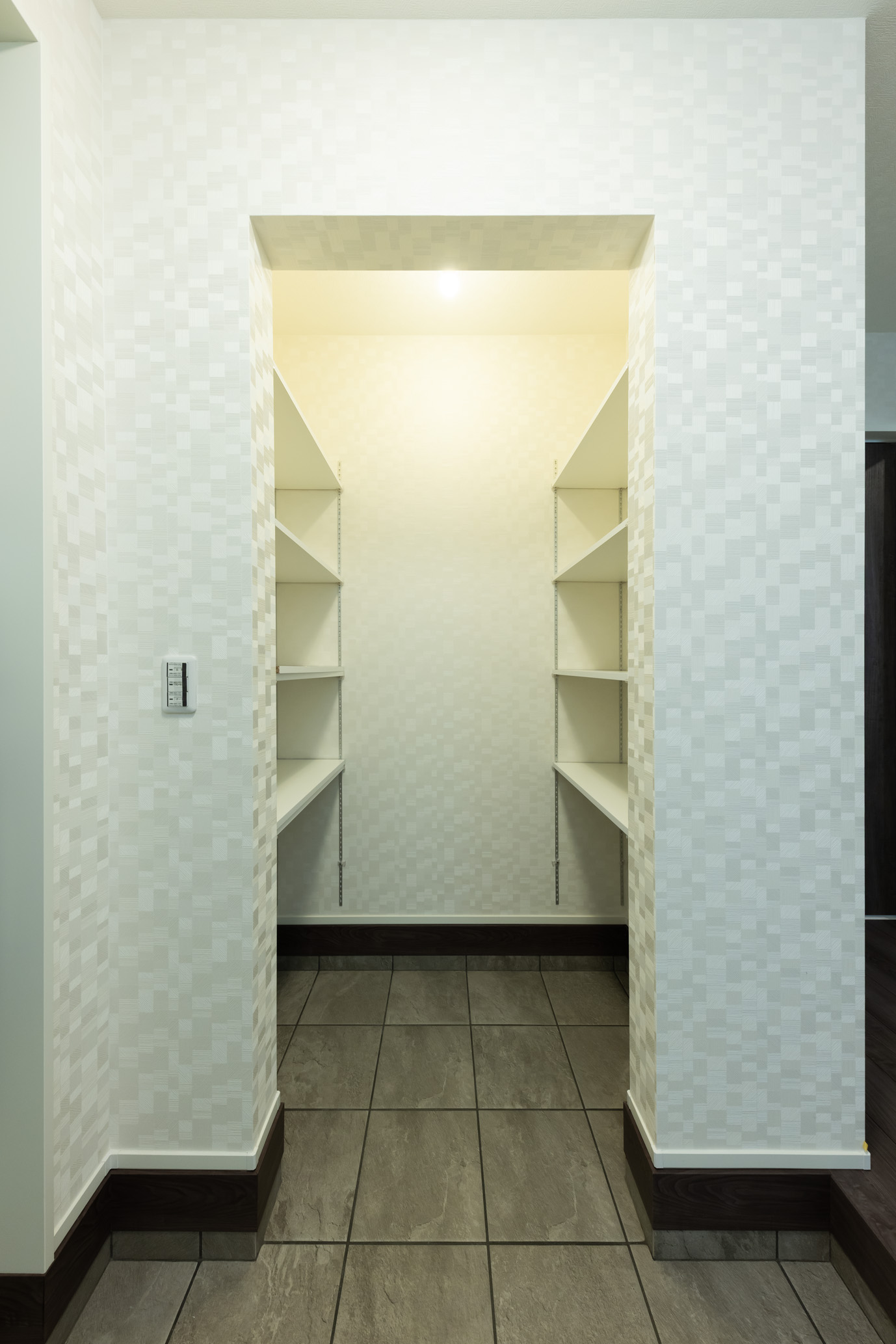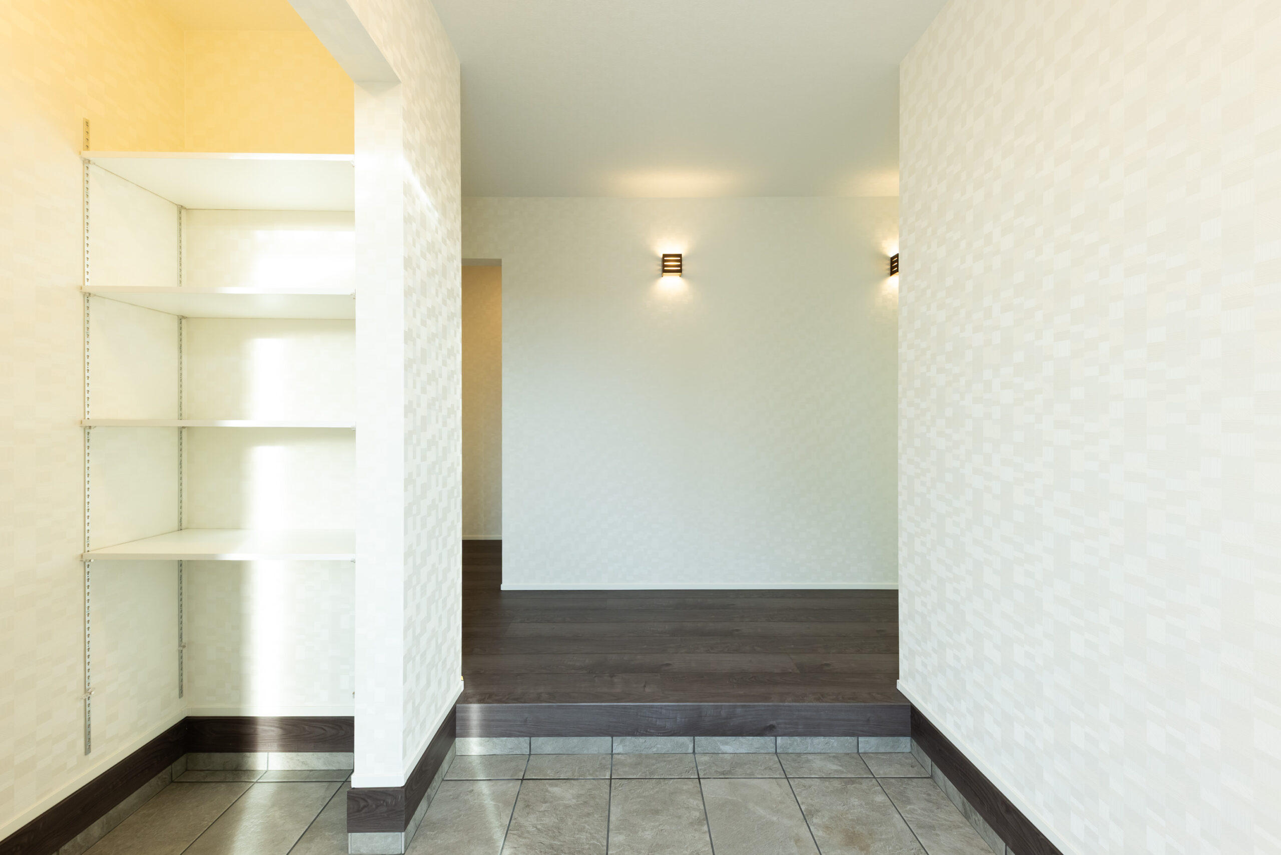 グレージュを基調に、素材のコントラストで魅せる外観。木目調サイディングと立体的なデザインが、やさしい雰囲気の中に印象深さをもたらします。室内は白で統一し、すっきりと洗練された印象に。自然光が美しく映え、明るく穏やかな空間が広がります。淡いトーンのフローリングが白を基調とした室内に自然になじみ、開放感のあるリビングを演出しています。また、生活動線を意識して収納を配置することで、使いたい場所に必要な物をしまえる計画に。家事や身支度がスムーズになり、日々の暮らしにゆとりをもたらす住まいです。素材の美しさと洗練された空間設計が響き合う、上質な暮らしを叶える理想の住まいです。