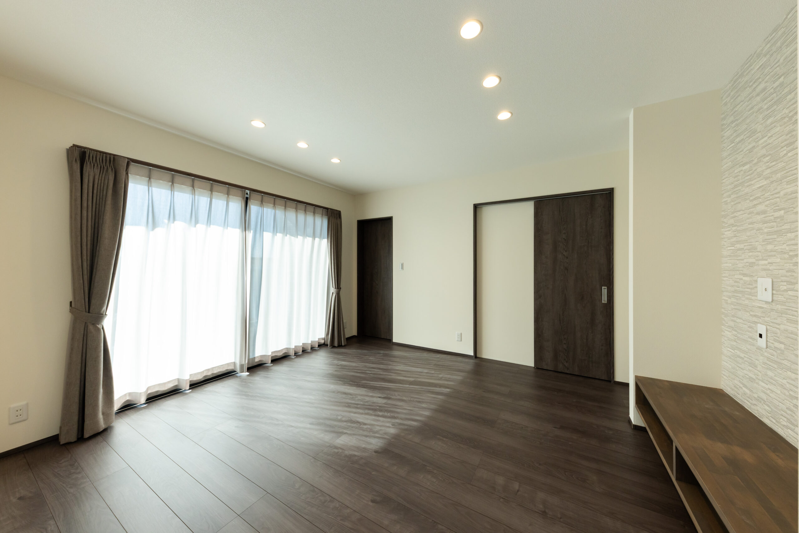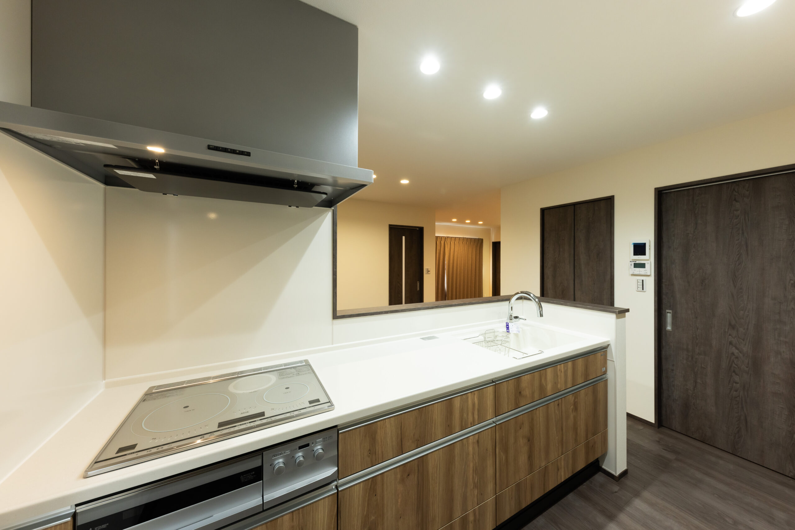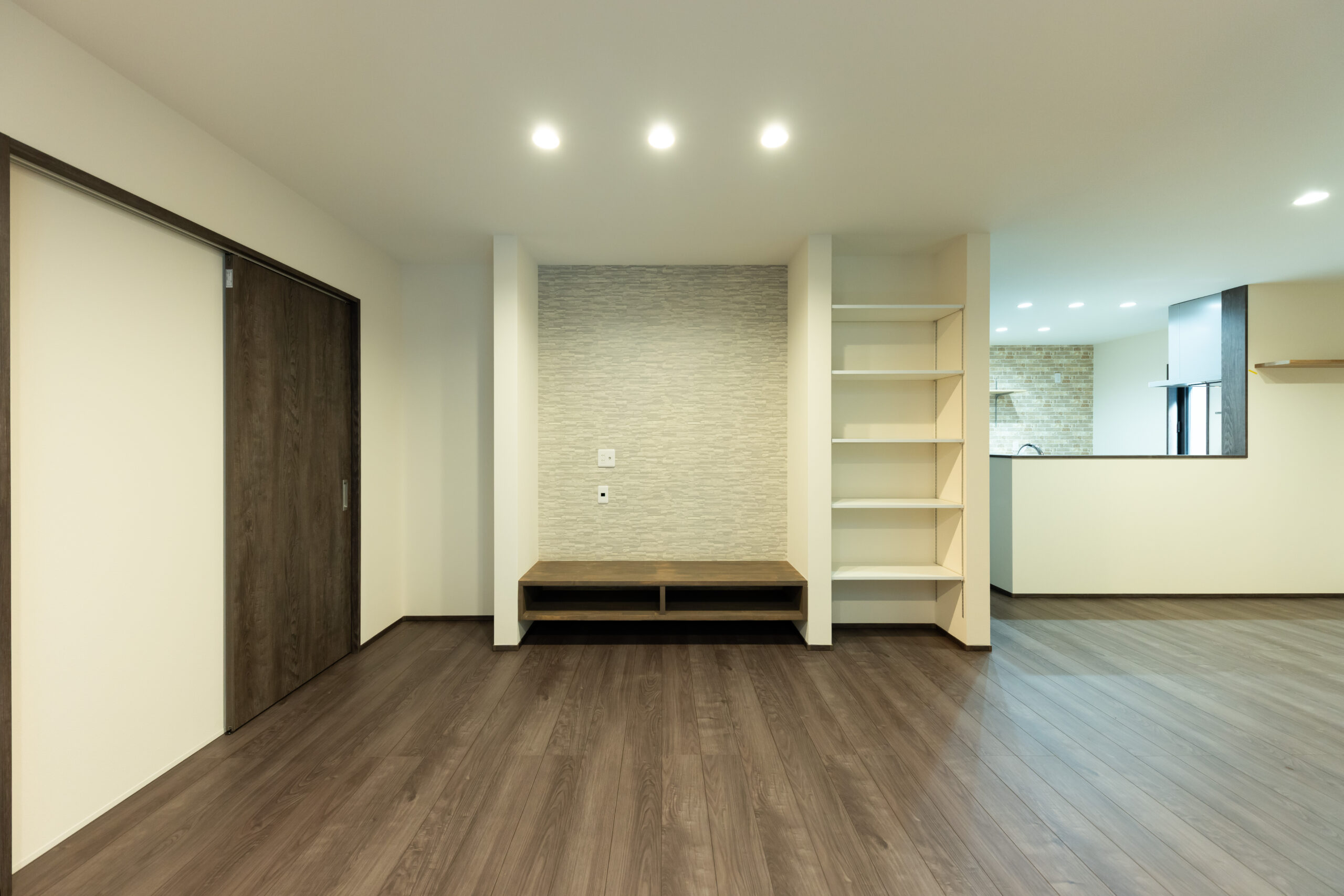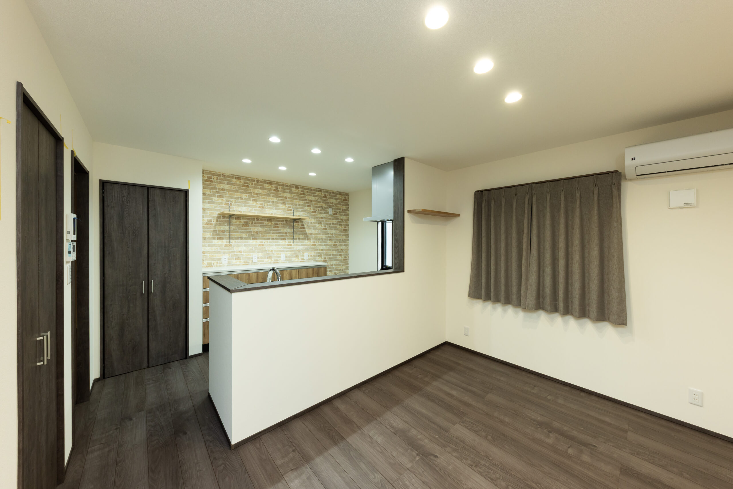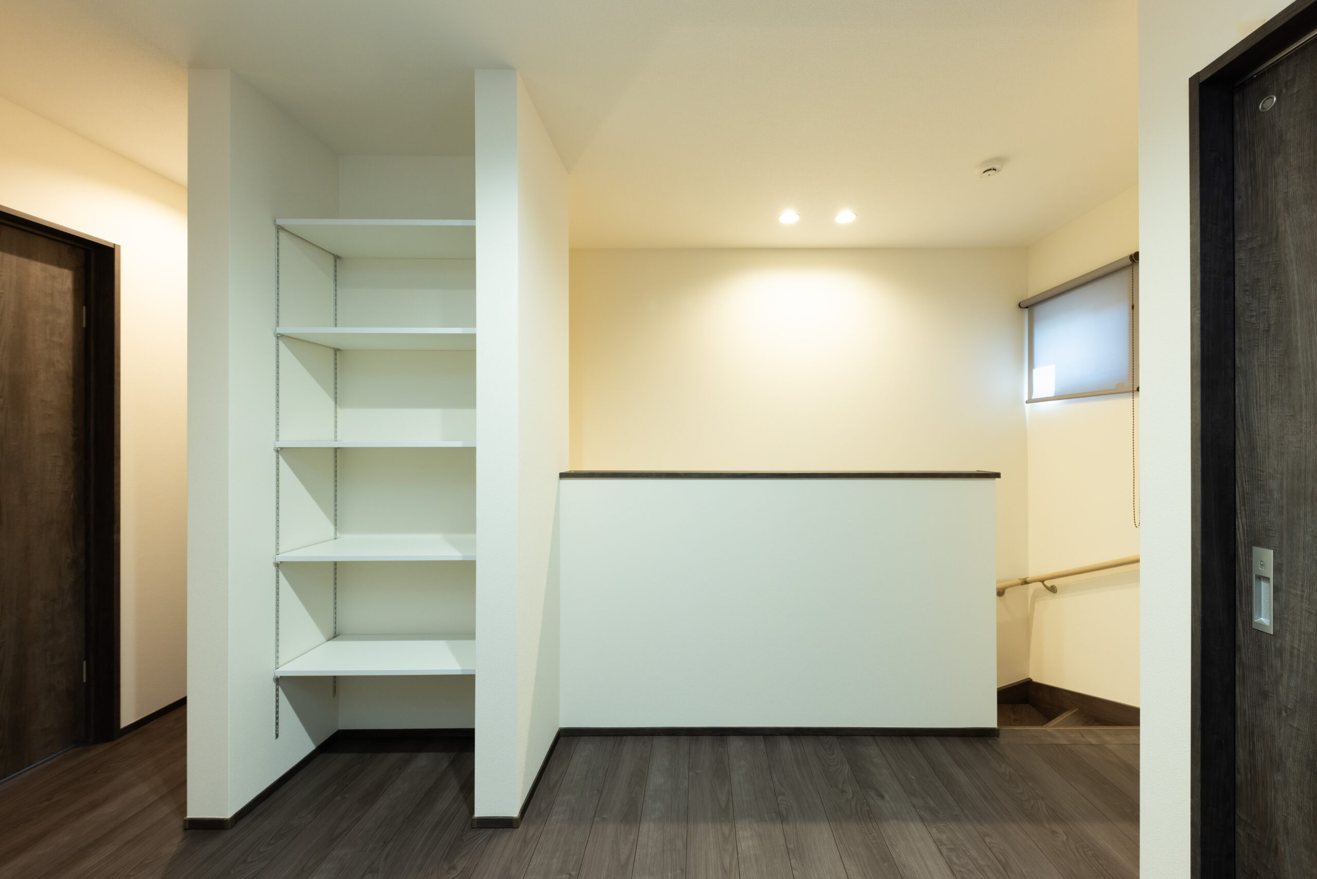 ダークグリーンを基調とした、重厚感のあるシンプルモダンな外観。玄関を抜けると、家族でのびのびと過ごせる、開放感あふれるリビングダイニングが広がります。二階から水回りへ直接アクセスできる動線にすることで、1階の生活音に配慮した、暮らしに寄り添う設計に。家族の過ごし方に合わせて自在に使えるセカンドリビングは、家族の気配を感じながらも、ゆったりとくつろげる場所です。家族の絆を大切にしつつ、それぞれの時間も尊重した、心地よく暮らせる三世代の住まいです。