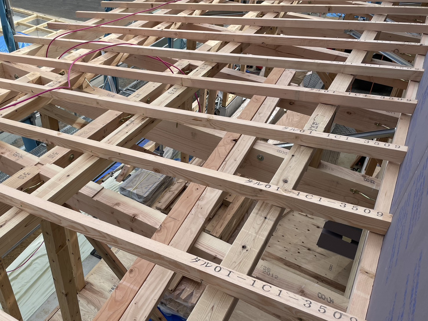 そして、小屋束を立てて母屋、垂木を施工していきます。