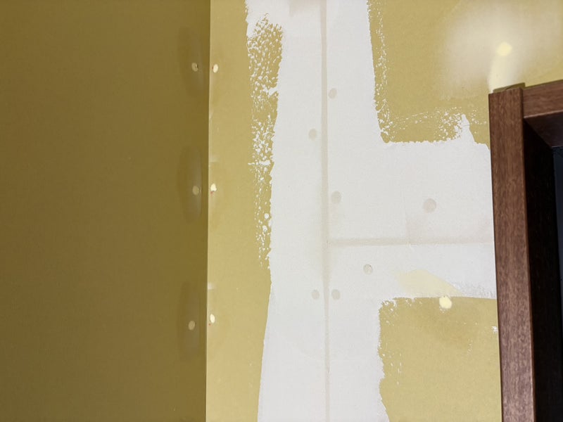 ボードとボードのつなぎ目やビスの穴をパテで埋め、