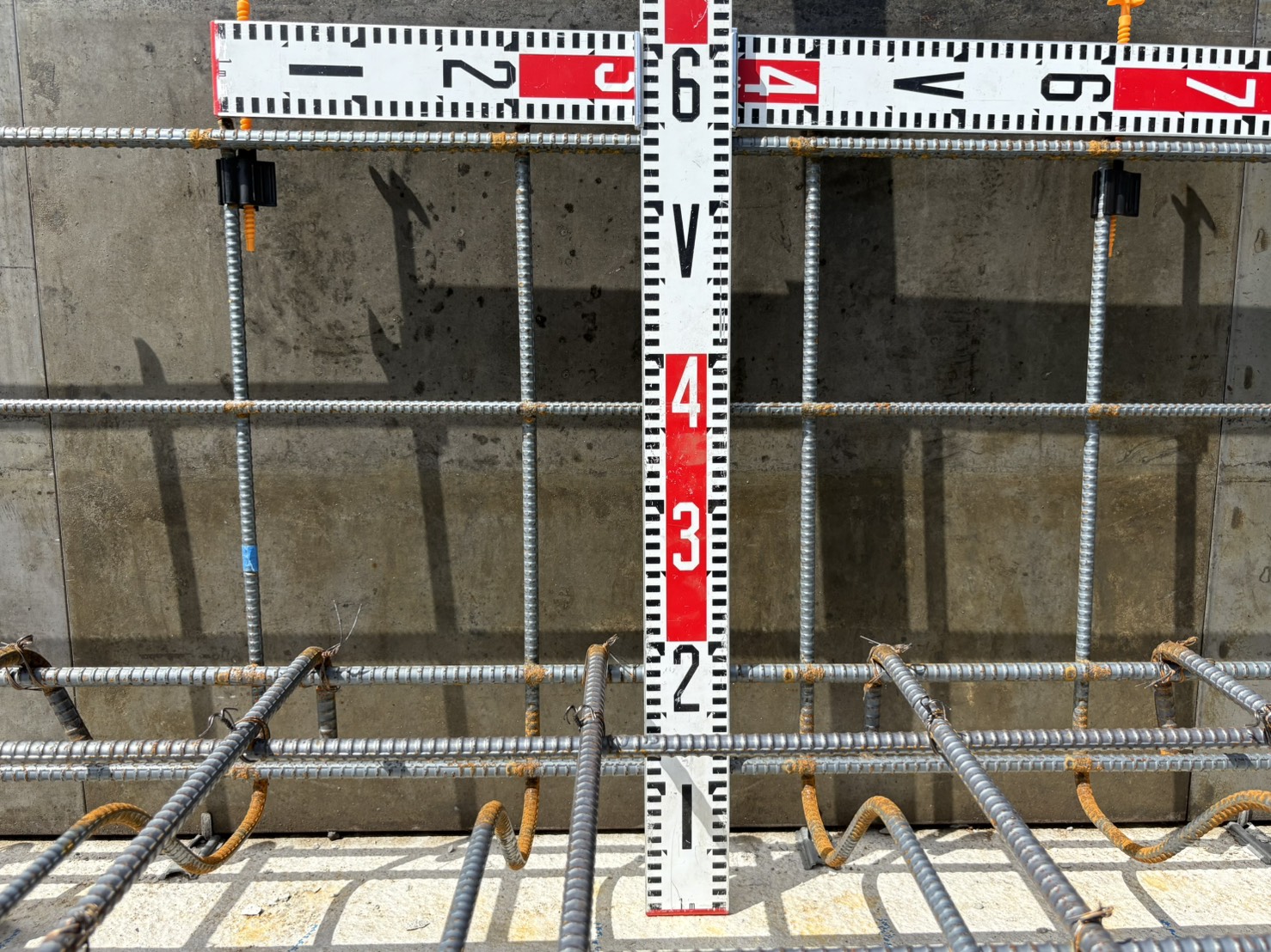 鉄筋のピッチや径、かぶり厚さ、人通口の位置などを確認していく検査です。