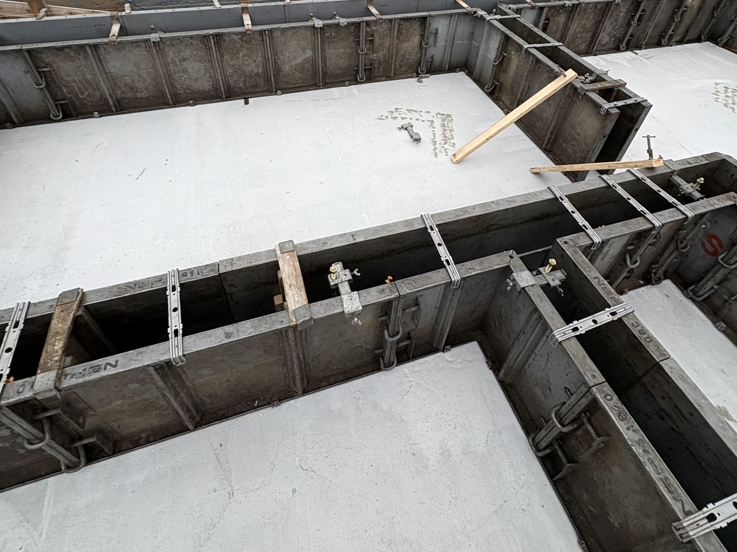 基礎工事終盤に差し掛かり、現在型枠を外しているところです。