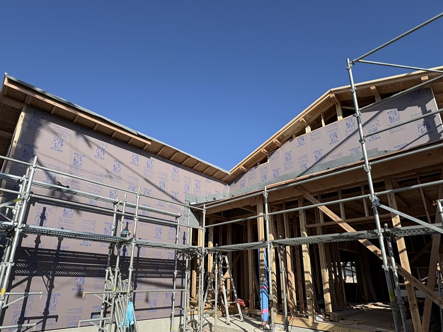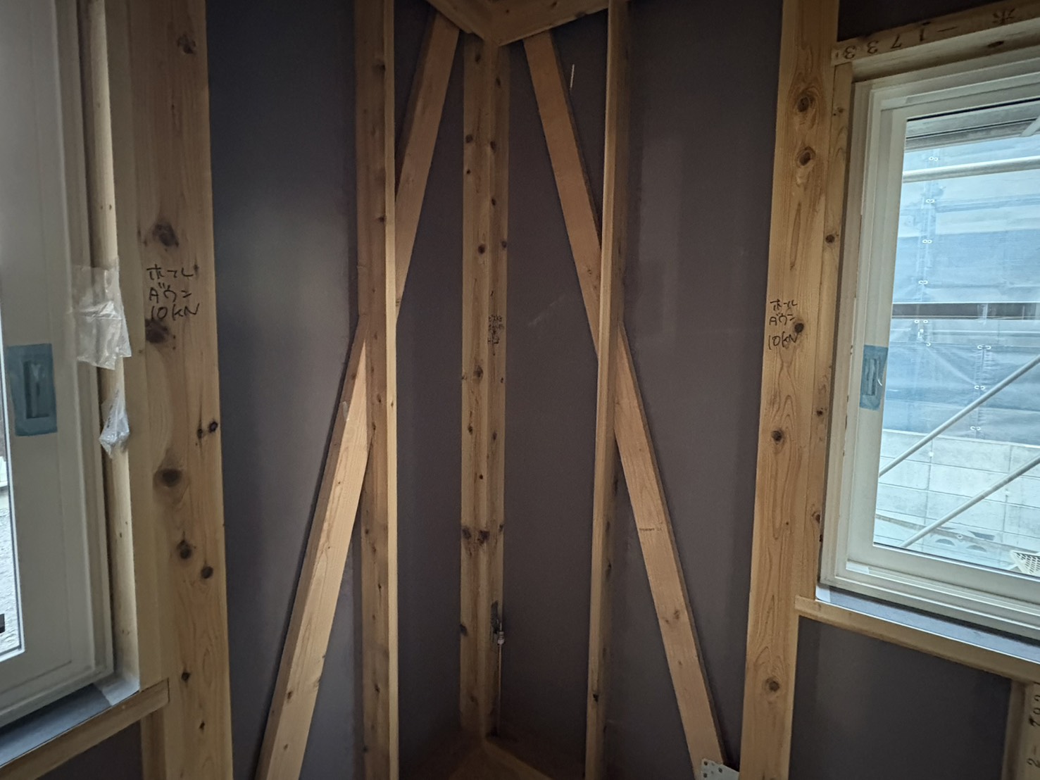 上棟時から筋交いを入れるまでは、仮筋交いというものを入れます。
