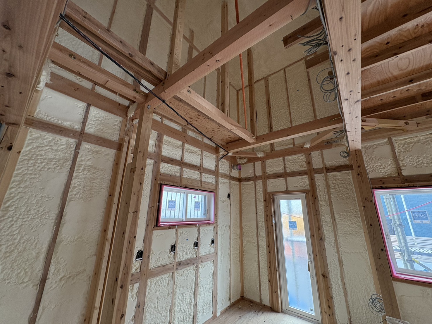 吹き付け断熱とは、液体の断熱材を壁や屋根に直接吹き付けて発泡させる工法です。